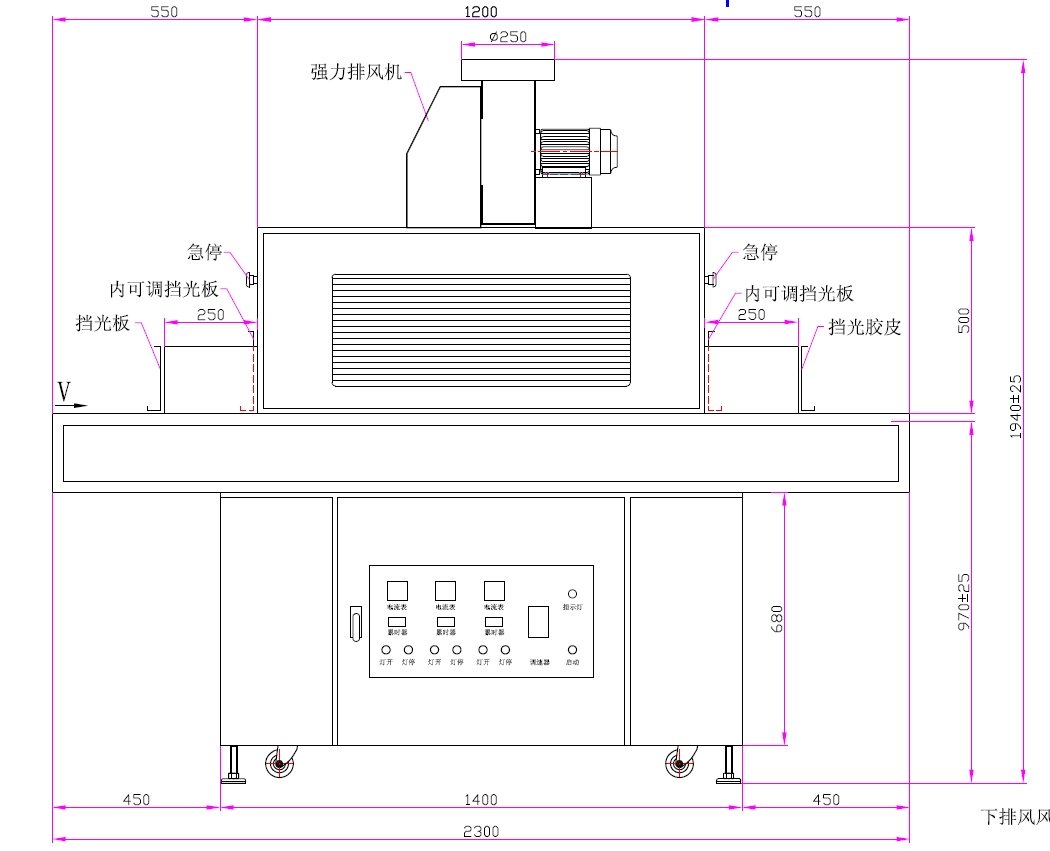 本設備采用3.0kW×3汞燈配置,主波峰365nm,搭配不銹鋼網(wǎng)帶輸送(0~7m/min)及上下排風系統(tǒng),適用于ABS等多種材質(zhì)表面絲印油墨的高效固化。配備進口反射器、漏電開關及累時器,確保安全穩(wěn)定運行。
