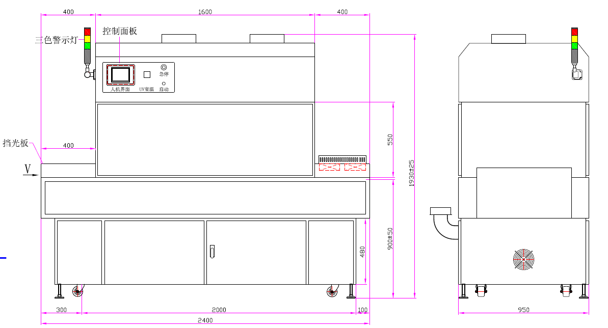 可調寬窄UV汞燈固化機加上下排風水冷PCB三防漆立式隧道爐
