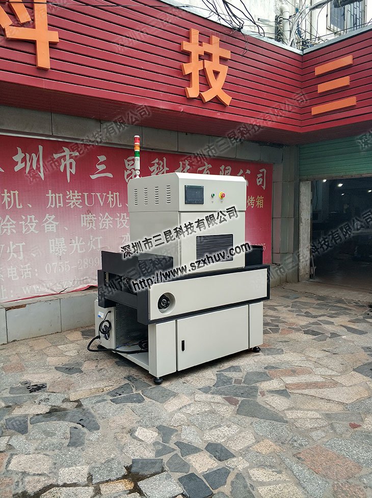 UV固化機是固化UV油墨和處理UV膠水的專用機械,其功能是將原材料經過光固化進行化學處理而形成的一種固化效果:UV膠水中參有光學劑和添加劑等,按預先設定的配合比,分別進行調配、輸送、固化、能量、時間、和出料,生產出符合質量要求的UV固化機形成的成品工藝品。安全是生產的頭等大事,三昆科技提醒廣大用戶注意安全事項。